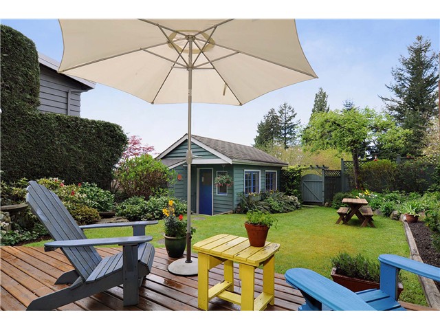 Prepare to be charmed!!! Enter through the front gate and you're in another world. Surrounded by lush landscaping, this heritage-style home offers all the charm of yesteryear with all the conveniences of today! Wood stove with brick surround, refinished wood floors and leaded glass compliment contemporary, skylit kitchen, elegant diningroom,peak-a-boo view and livingroom with walk-out deck. Down, there's a cozy family room with French doors to a wonderfully private, fenced back yard with its own freestanding studio(additional 232 sf). Perfect for downsizers & young families-small neighbourhood park across the lane! Meticulously maintained, thoughtfully updated,surprisingly quiet and very private!