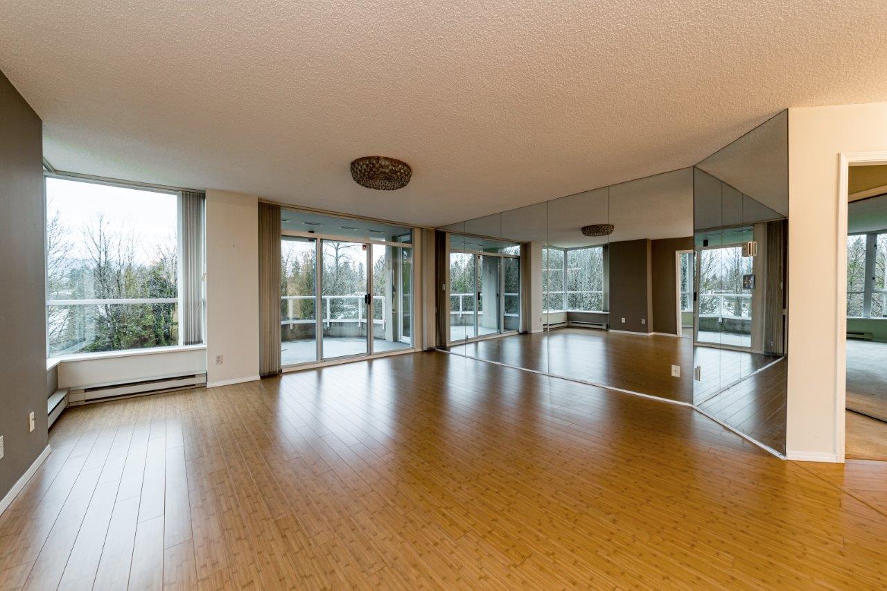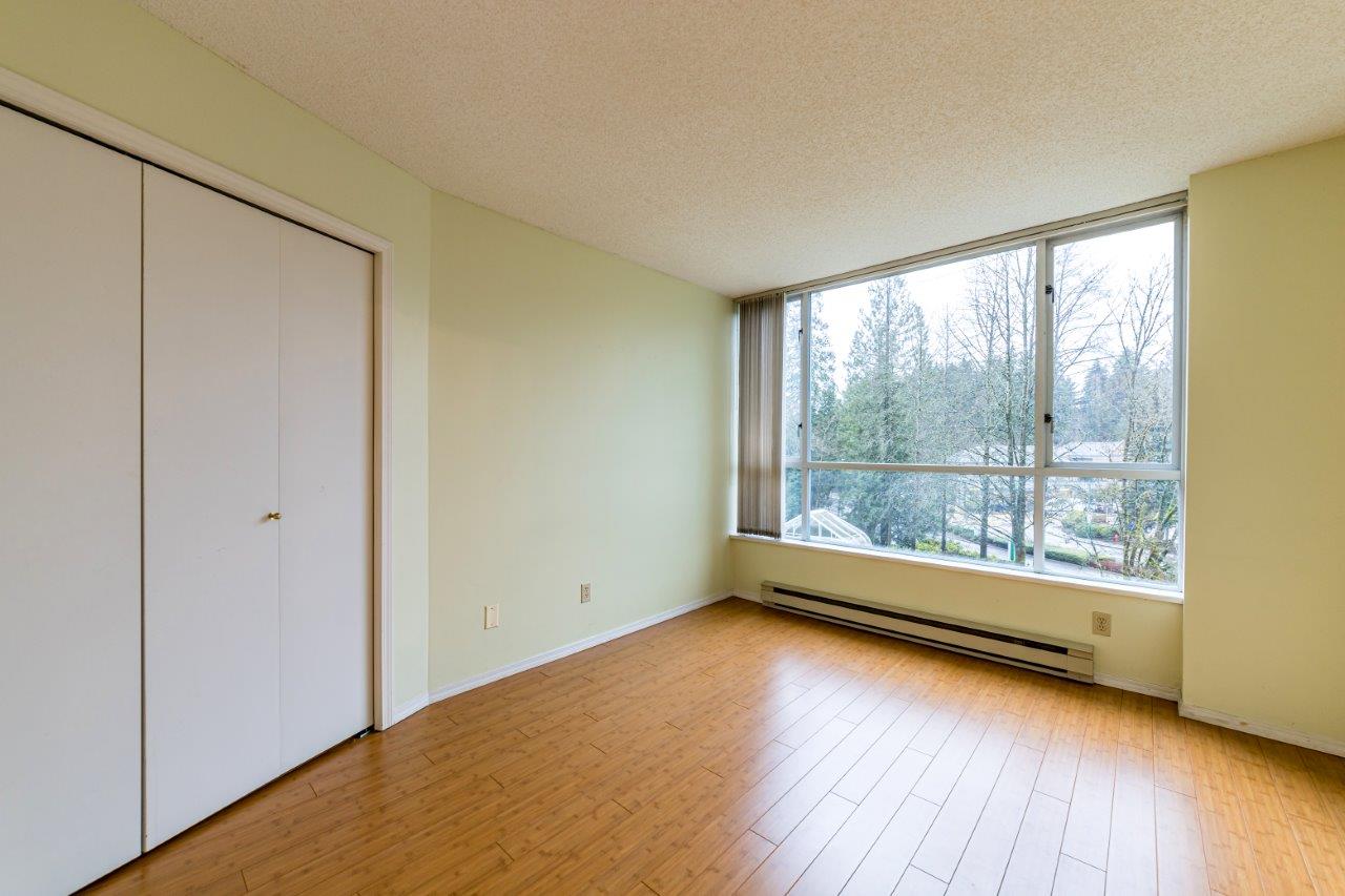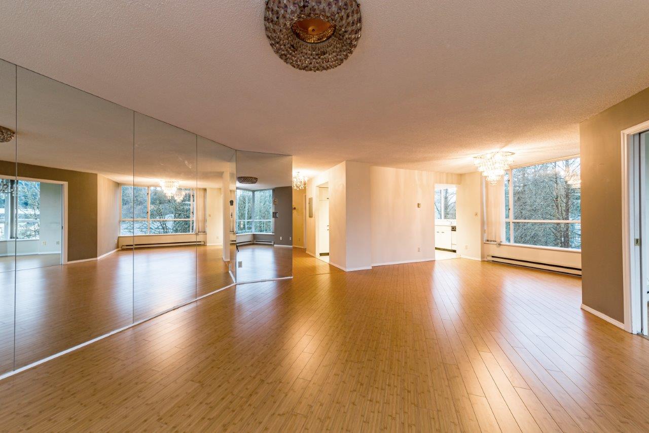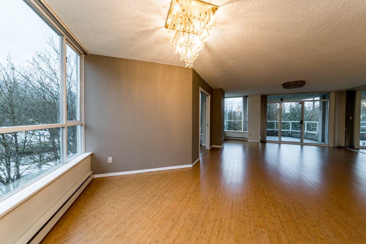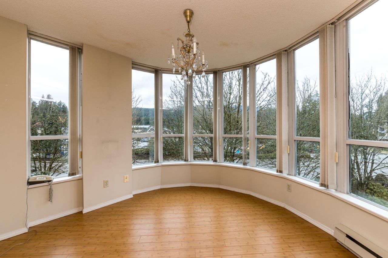 This spectacular 2 bed & den condo with large private balcony is close to 1500sq/ft. Sought-after concrete tower was built by Bosa. The spacious rooms with soaring floor-to-ceiling windows creates a sensational bright home which will accommodate your house sized furniture. Features in-suite laundry, in-suite storage, gorgeous hardwood flooring & mirrored wall in the living room. Move in or renovate – the choice is yours. Secured parking & a storage locker. Amenities include a bike room, exercise room, lounge, hot tub & sauna. Located across from Parkgate Shopping Centre, Public Library, Seniors Centre, Community Centre, Golf Course & much more. One of North Vans best locations with Ski Hill & Beaches nearby. Pets not allowed; rentals allowed with restrictions. Amazing opportunity!