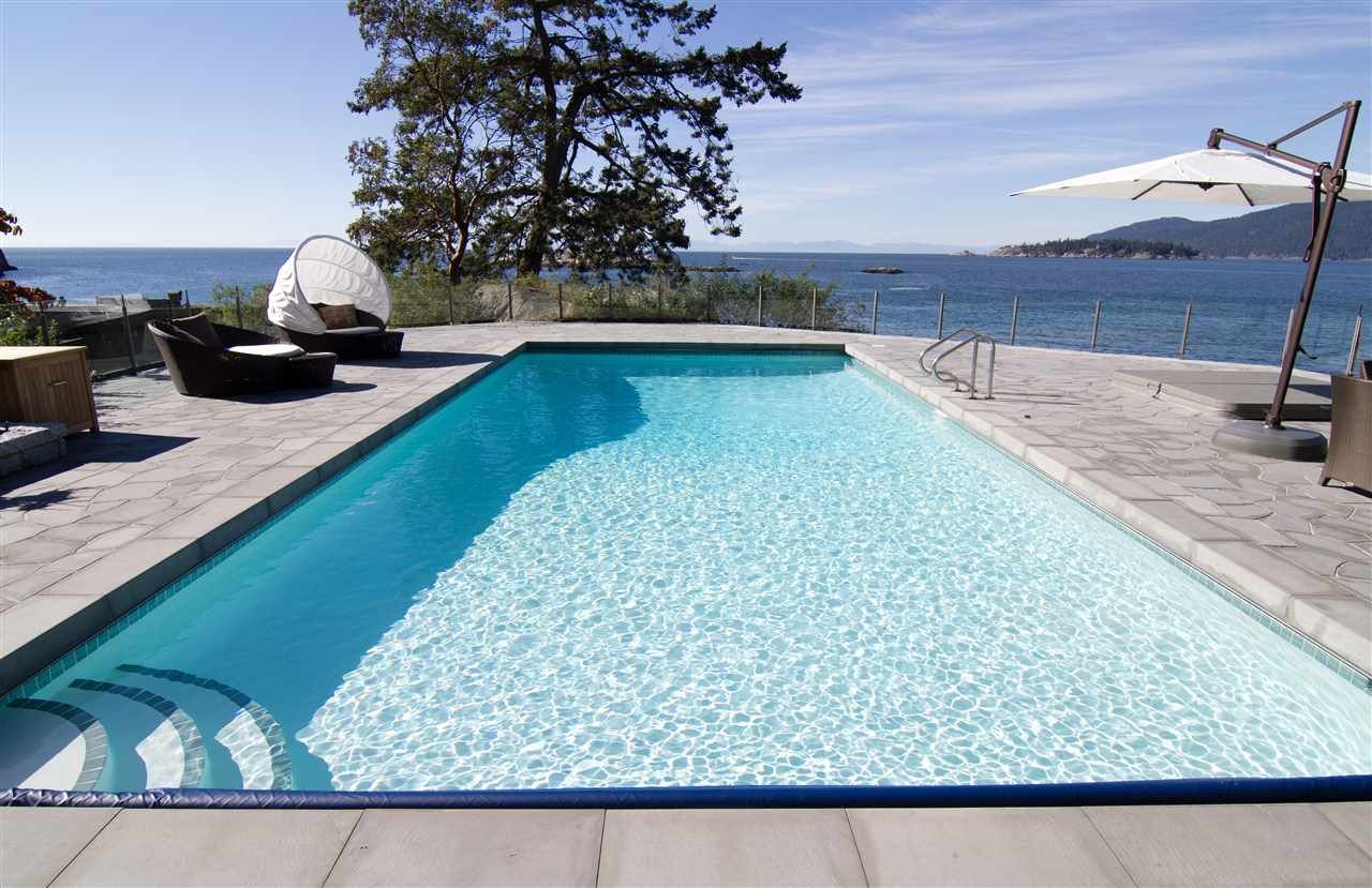 Cotton Cove Estate waterfront property with 1.57 acres of predominantly flat land is situated on the West Vancouver coastline, and offers the tranquility and serenity of a far away luxury resort only minutes from downtown Vancouver. This child friendly Tudor home with over 7700 sq ft of spacious living space features balconies and a finished basement also includes a self-contained nanny suite and 3-car garage. The property includes access to a private sandy beach, rolling lawns, heated in-ground 40' x 20' pool overlooking the ocean and a beach house with kitchen, washroom and washer/dryer. This is truly one of the finest waterfront properties in West Vancouver