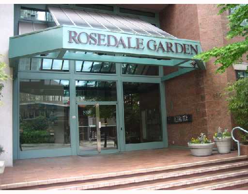 Rosedale Gardens, large, bright one bedroom with balcony in great downtown location. Enjoy the views and close proximity to trendy Yaletown shops and restaurants, Urban Fare, BC/GM Place, Costco and Robson St, just to name a few. Use of Rosedale Hotel facilities at $50/year. One parking stall, one storage locker and plenty of in-suite storage is included with this home. Call to view!