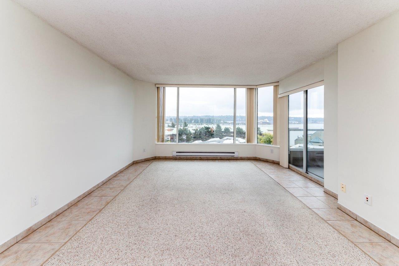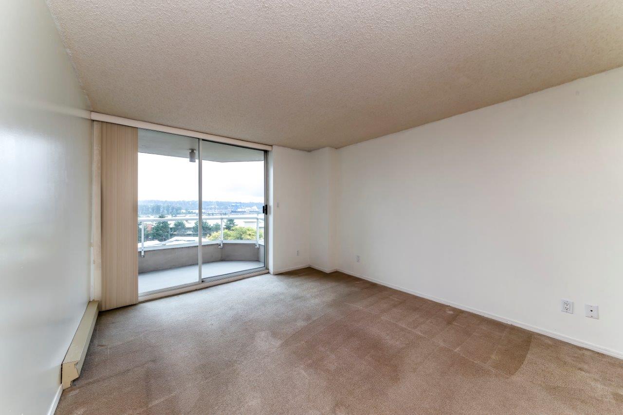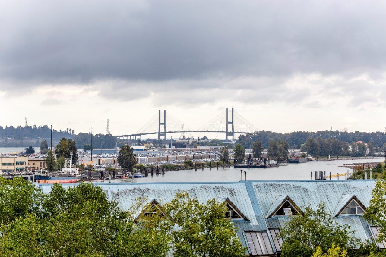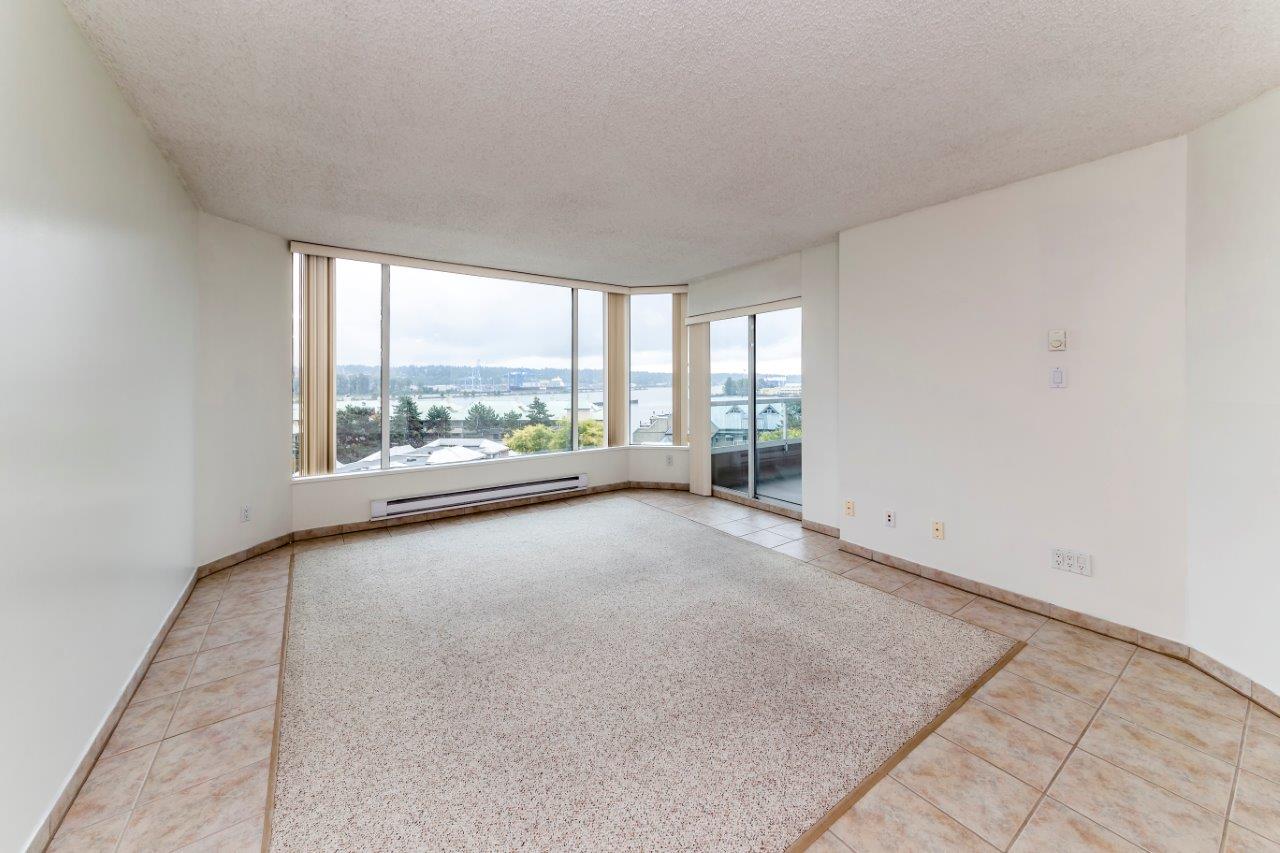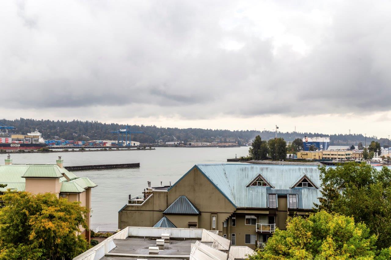 Beautiful panoramic views of the Fraser River! Spacious & bright 2 bdrm (2nd bdrm is large den without closet) Suite in Quayside II. The kitchen features newer countertops with breakfast-bar & new tile backsplash, sink & faucet, newer fridge, self-cleaning stove & dishwasher. Ceramic tile flooring throughout with carpet in living room & master bdrm. Awesome insuite storage & insuite laundry. Extra large view balcony great for BBQ's & entertaining. Located on quiet side of the building. Quayside Tower's amenities - indoor pool, sauna, exercise room & meeting room! New plumbing in the building just completed. Steps to waterfront boardwalk, the Quayside Public Market & SkyTrain. Solid investment & a must see!