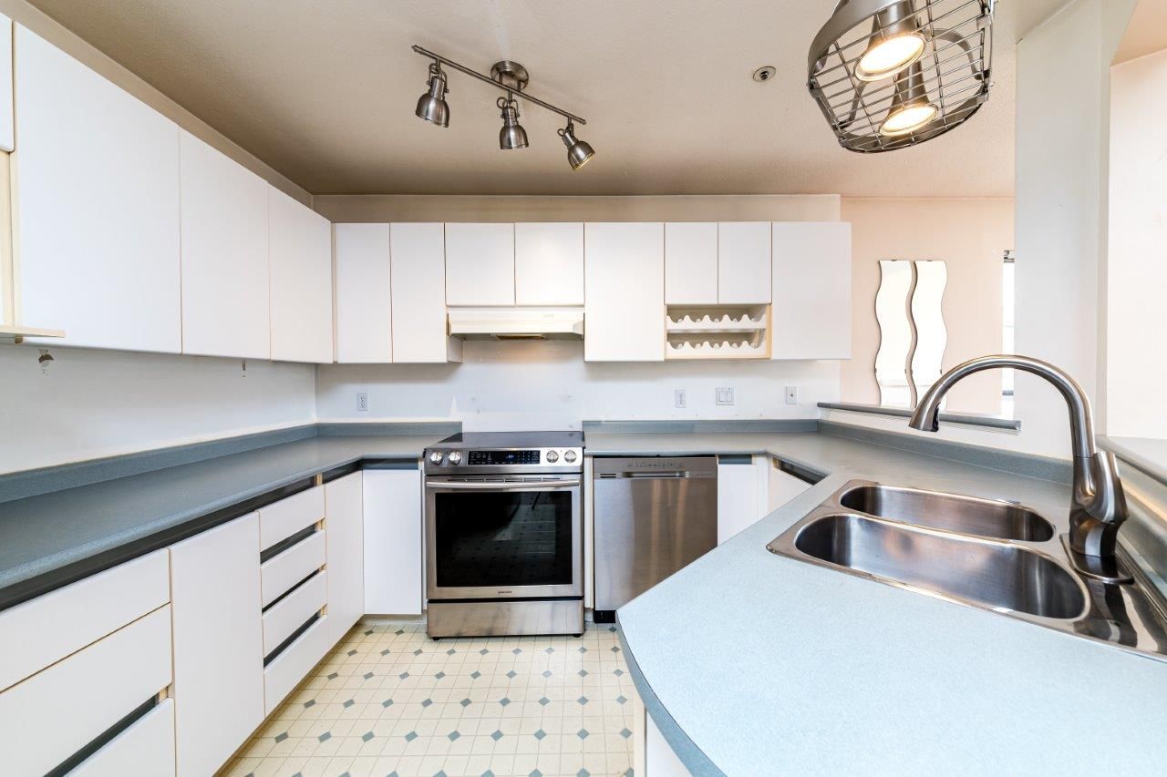 Sensational opportunity to own a sought-after top floor unit in The Jefferson! Featuring 1000sq/ft. of living. This condo is very bright & inviting with a skylight, picture windows, open kitchen with brand new stainless appliances, 10' vaulted ceiling in the living room, cozy gas fireplace, a generous sized east facing sun filled balcony ideal for entertaining & BBQ’s. 2 bedrooms & 2 bathrooms include a large master with vaulted ceiling & a 5-piece ensuite, New in-suite laundry, a storage locker & bonus 2 side by side secure parking stalls. In the Heart of Coquitlam & walking distance to the Sky train, Lafarge Lake, Aquatic centre (across the street), shopping, restaurants, library, Douglas College, trails & much more. Your personal touch & updates will make this condo absolutely outstanding!