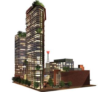A collection of modern living enviroments, the new SFU School ot Contemporary Arts and Club W. Surrounded by green spaces, theatres, galleries, shops and cafes.