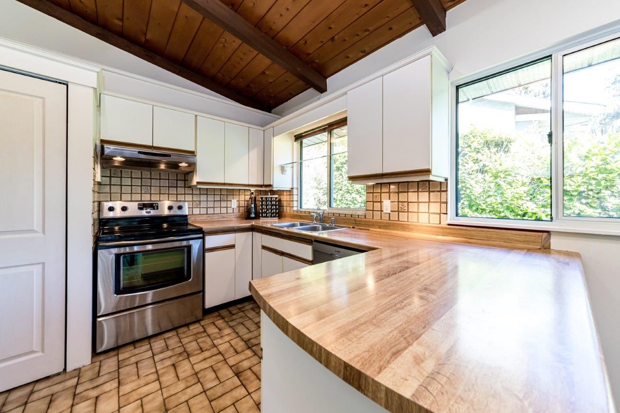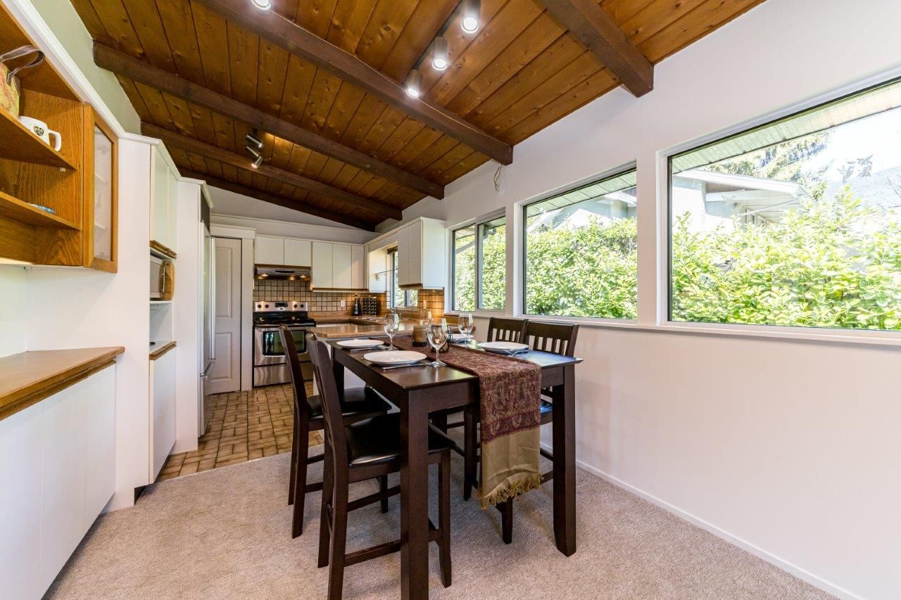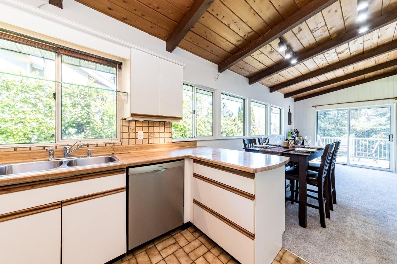 Charming classic West Coast Mid-Century Post & Beam home set back on a private sun filled corner lot in desirable Deep Cove. The open plan main level features 3 bedrooms + 1 bathroom, laundry, spectacular vaulted ceilings with exposed beams throughout, open kitchen, cozy wood burning fireplace, living & dining room which open onto the spacious sun deck. Well maintained & many updates make this home move-in-ready including; stainless appliances, Sub Zero fridge, high efficacy furnace, water tank (2019), double windows & detached workshop. Large lower level with separate entry is bright & has 2 bedrooms + 1 bathroom with a separate laundry, full kitchen & a wood burning fireplace. Loads of parking for your boat or RV. Fenced-in backyard great for kids & pets. Steps to trails & minutes to beaches, marina, skiing, golfing, shopping, restaurants, rec centre & all levels of schools. Ultimate lifestyle & fabulous home in a picturesque setting!
