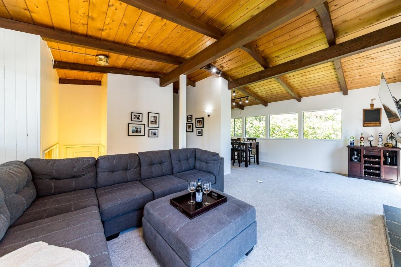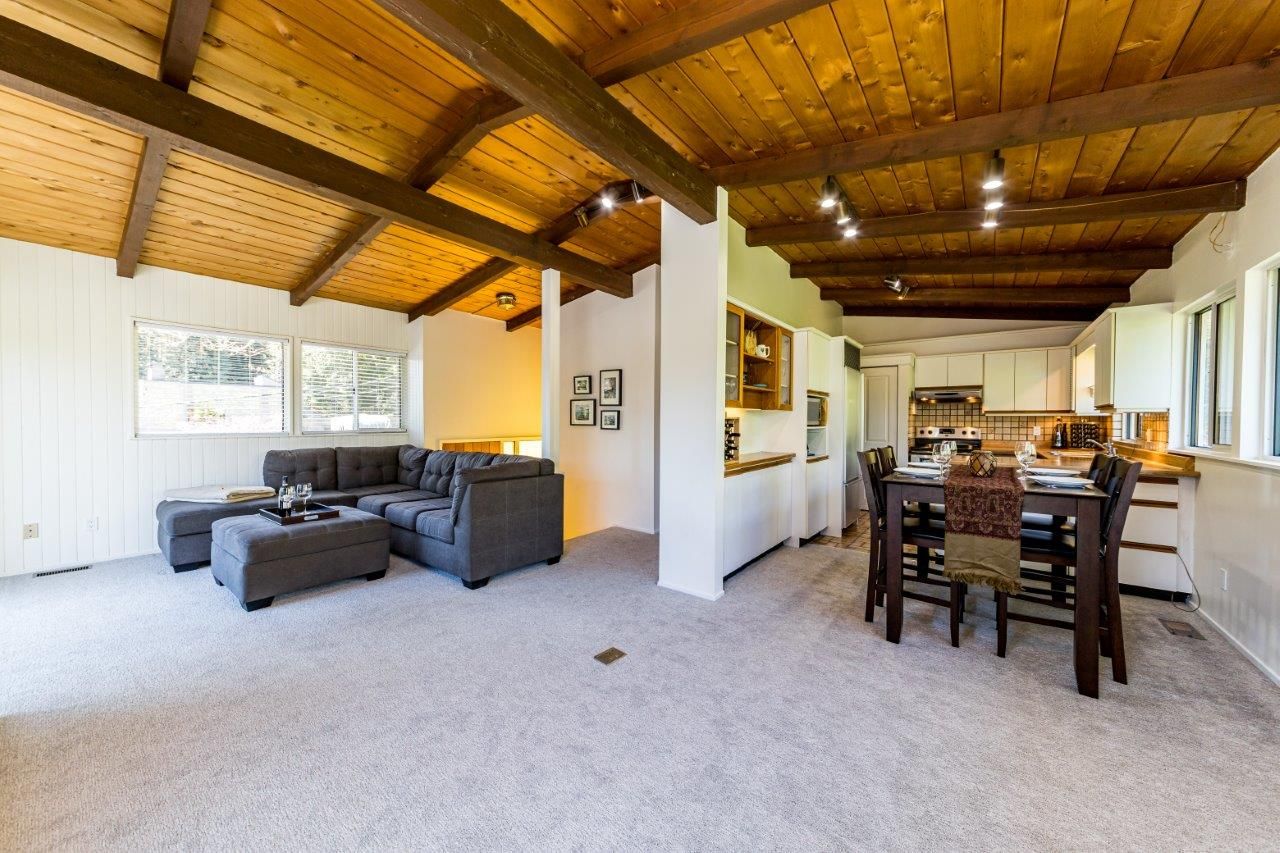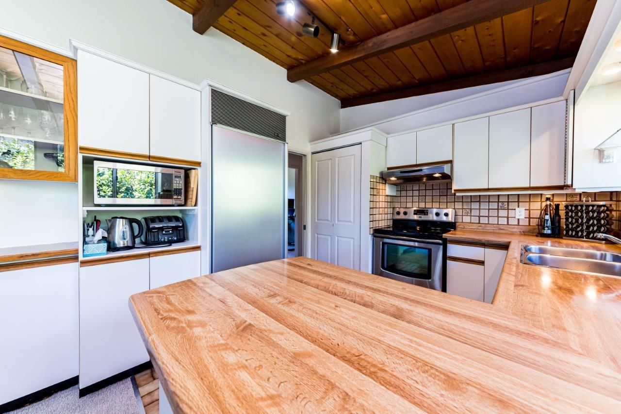 Charming classic West Coast Mid-Century Post & Beam home set back on a private sun filled corner lot in desirable Deep Cove. The open plan main level features 3 bedrooms + 1 bathroom, laundry, spectacular vaulted ceilings with exposed beams throughout, open kitchen, cozy wood burning fireplace, living & dining room which open onto the spacious sun deck. Well maintained & many updates make this home move-in-ready including; stainless appliances, Sub Zero fridge, high efficacy furnace, water tank (2019), double windows & detached workshop. Large lower level with separate entry is bright & has 2 bedrooms + 1 bathroom with a separate laundry, full kitchen & a wood burning fireplace. Loads of parking for your boat or RV. Fenced-in backyard great for kids & pets. Steps to trails & minutes to beaches, marina, skiing, golfing, shopping, restaurants, rec centre & all levels of schools. Ultimate lifestyle & fabulous home in a picturesque setting!